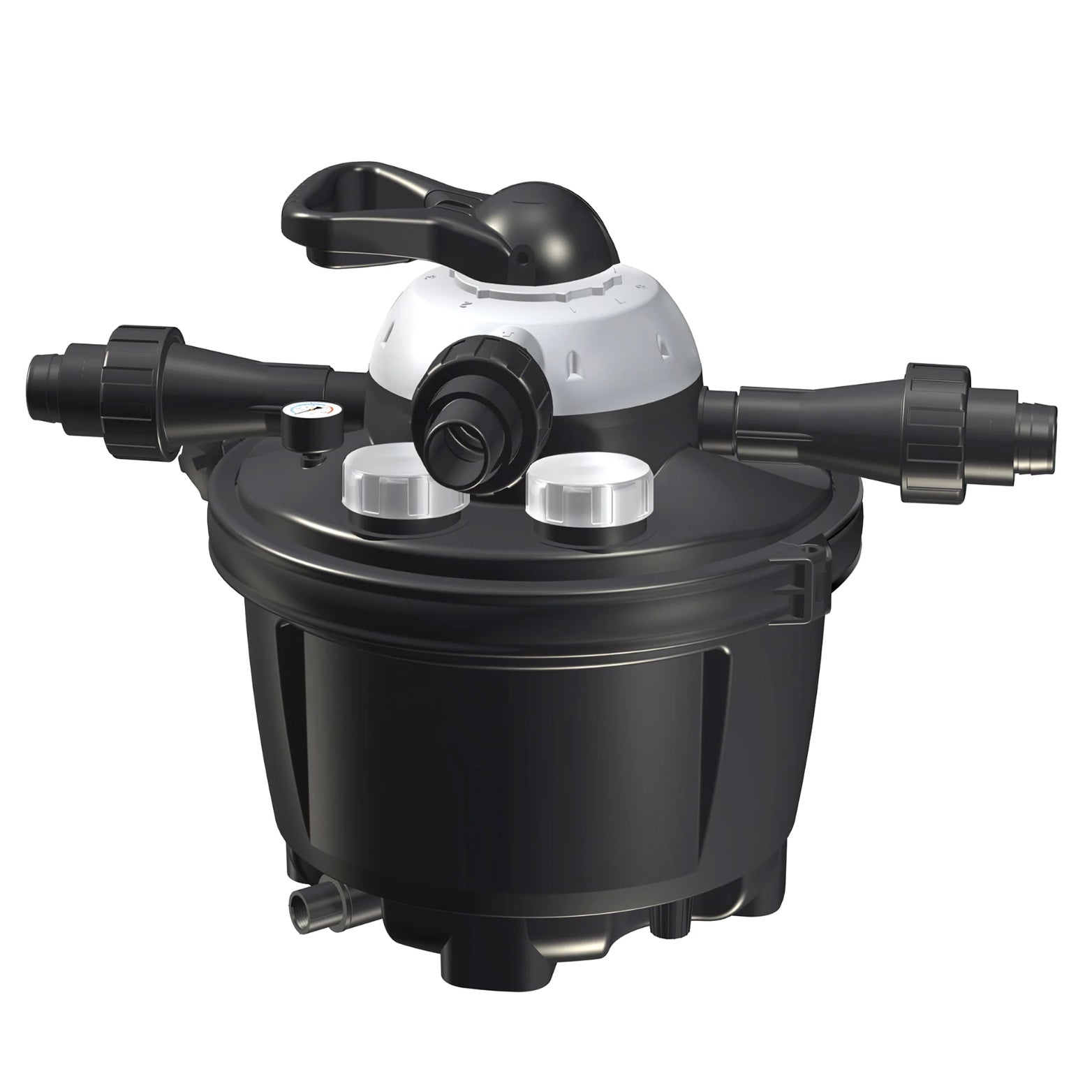 Pondmaster ClearGuard Pressurized Pond Filter helps keep your pond clean with dual-action biological and mechanical filtration. The unique design filters with beneficial bacteria using bio-media while at the same time, mechanically polishing water with a reusable filter pad. This ClearGuard CGUV2700 can be added to any pond and will effectively lower ammonia and nitrite levels in the water. With the available UV Clarifier installed, Clearguard controls green water in the pond while its multi-function valve selector easily clicks into place for convenient filtering, backwashing, rinsing and winterizing.